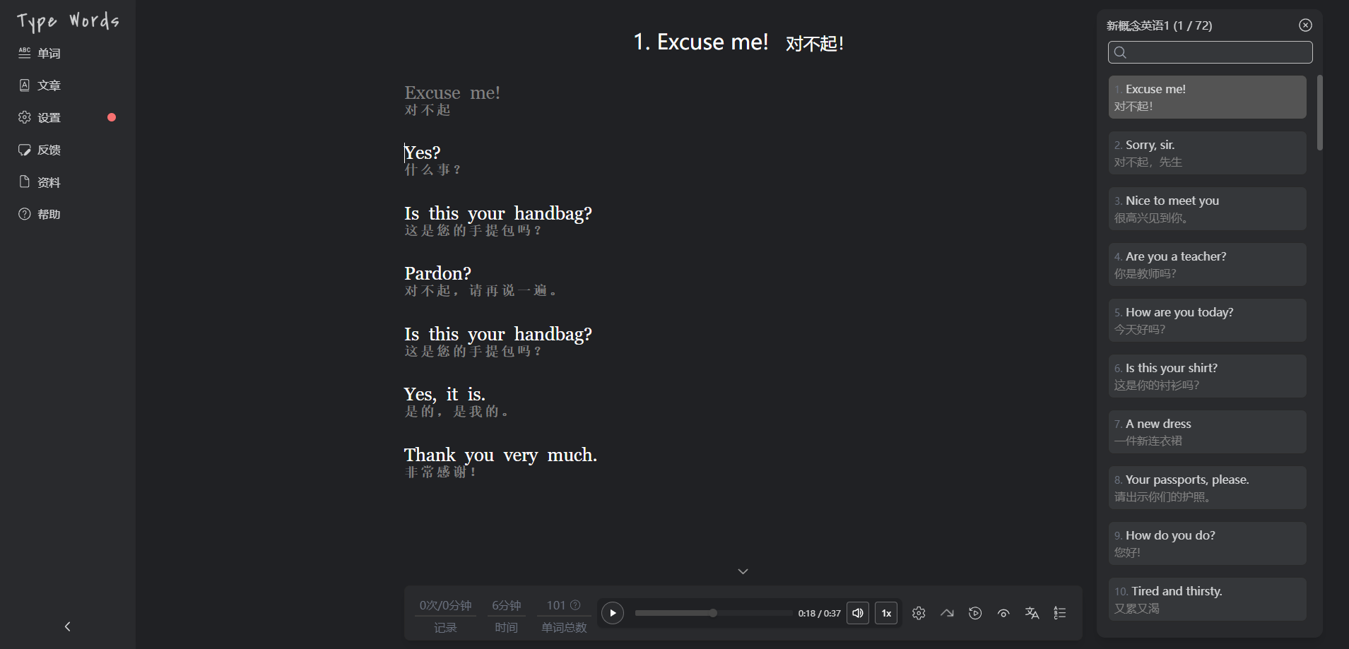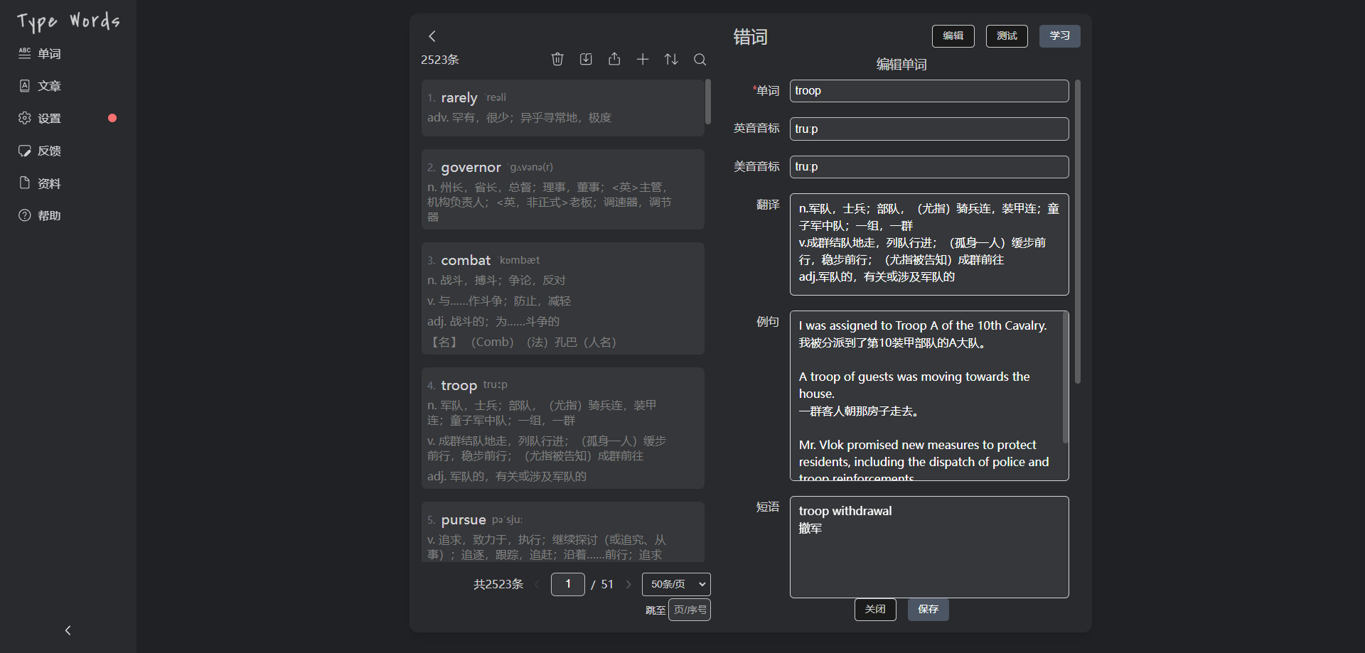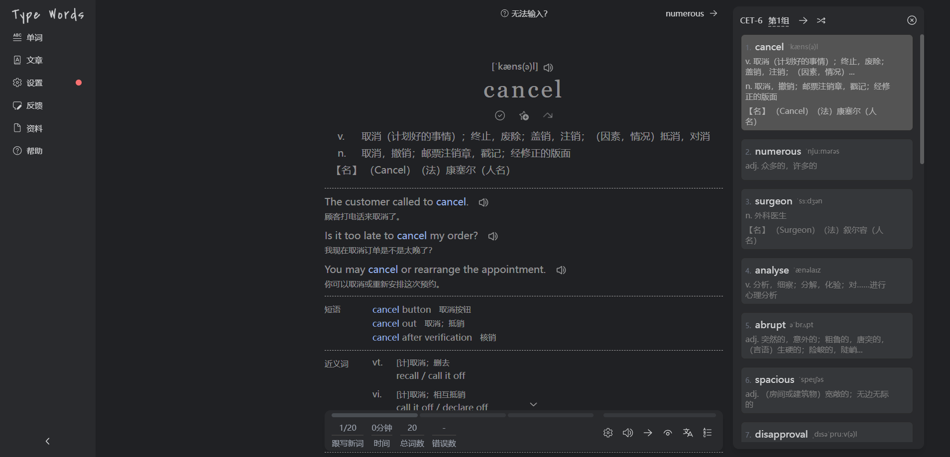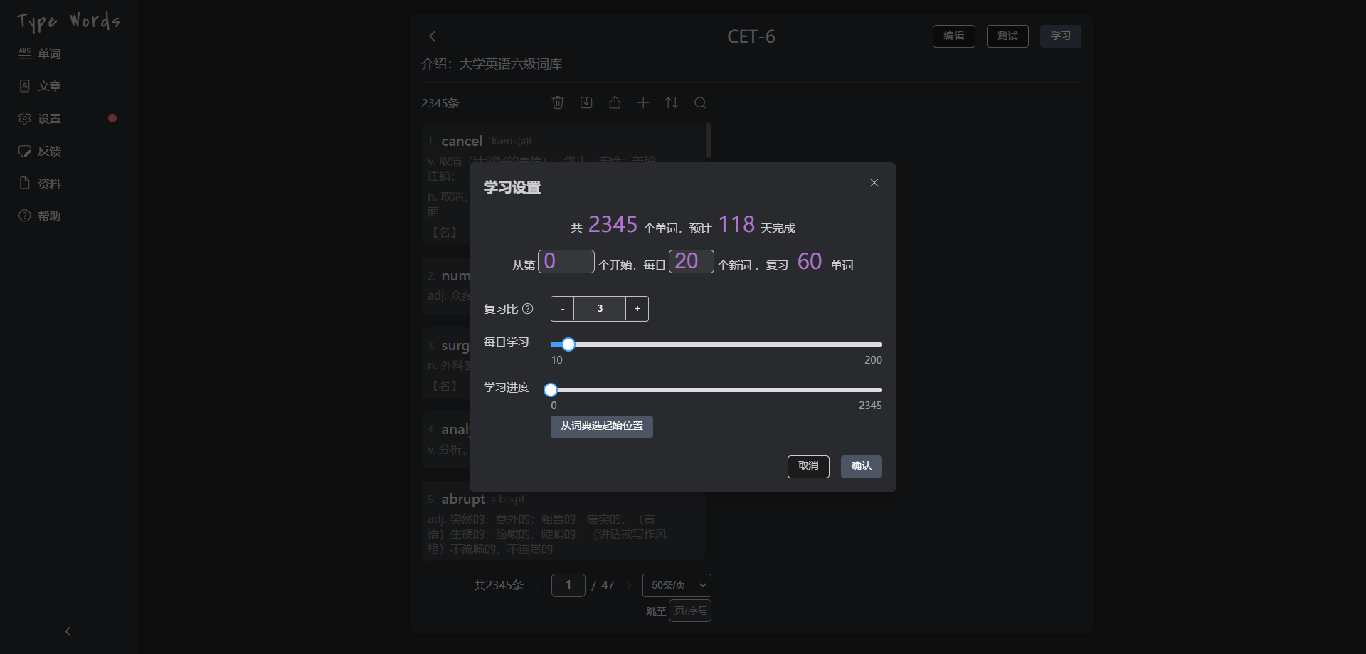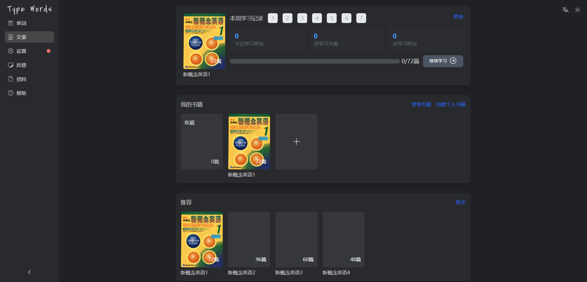 TypeWords —— 一款开源的单词与文章练习工具,使用按键输入的方式学习英语,通过更智能的记忆方式实现高效学习,界面简洁且功能丰富。