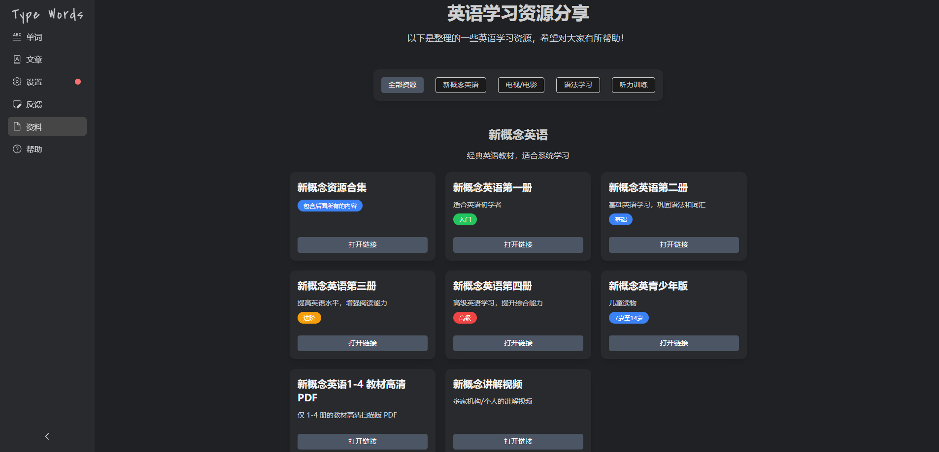 打字学英语!一款开源单词与文章练习工具!