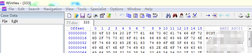 结合wireShark分析附件类型,新建一份相同类型的文件,也通过winHex打开,确定该文件的起止标志。