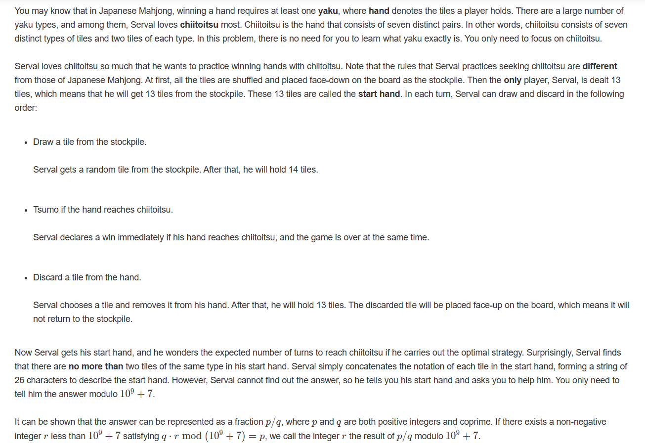 Chiitoitsu (概率 dp 绝对是一道不错的题)