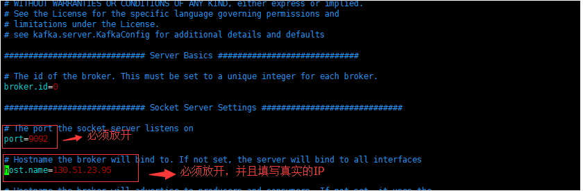 修改其中的:修改 config/server.properties文件(多节点的话,每个节点都修改一下)