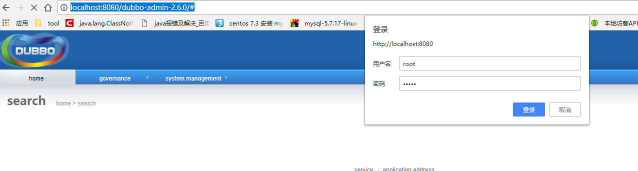 在浏览器输入http://localhost:8080/dubbo-admin-2.6.0/进入dubbo管理页面