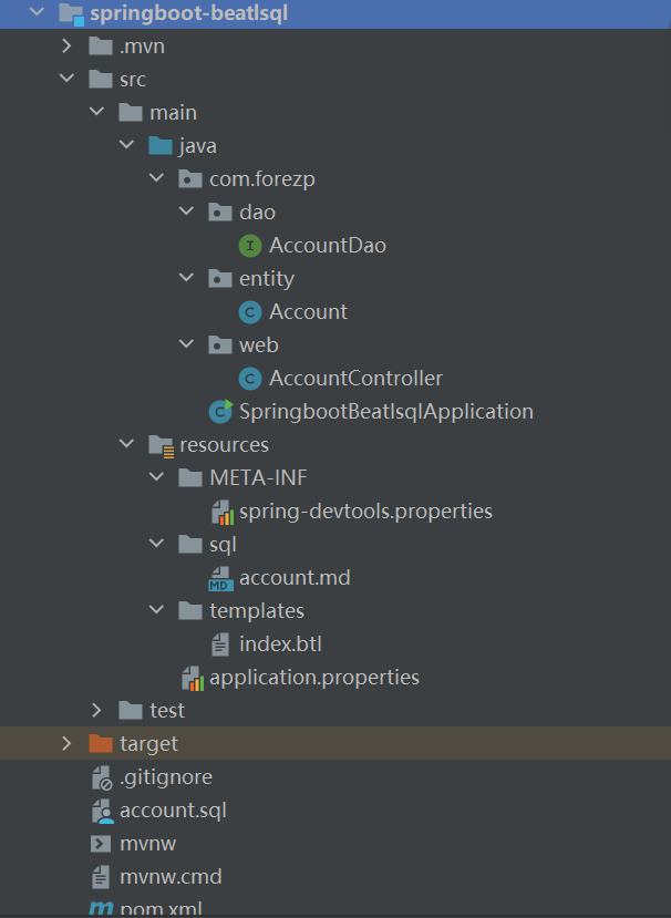 由于springboot没有对 beatlsql的快速启动装配,所以需要我自己导入相关的bean,包括数据源,包扫描,事务管理器等。