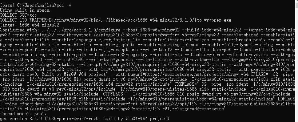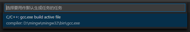 { "version": "2.0.0", "tasks": [ { "type": "cppbuild", "label": "C/C++: gcc.exe build active file", "command": "D:\\mingw\\mingw32\\bin\\gcc.exe", "args": [ "-g", "${file}", "-o", "${fileDirname}\\${fileBasenameNoExtension}.exe" ], "options": { "cwd": "D:\\mingw\\mingw32\\bin" }, "problemMatcher": [ "$gcc" ], "group": { "kind": "build", "isDefault": true }, "detail": "compiler: D:\\mingw\\mingw32\\bin\\gcc.exe" } ] }