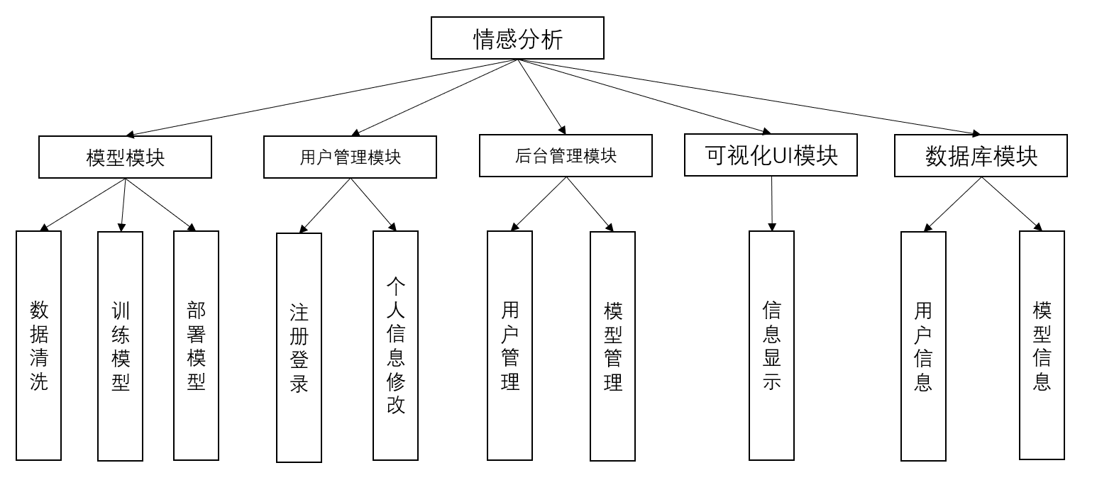 |-- senti_analysis 主要对传入的文本进行分析处理 ||-- Model.py 数据库模型以及相关操作,负责和数据库交互,进行数据处理 ||-- urls.py URL配置表文件,主要是将URL映射到应用程序上 ||-- view.py 保存响应各种请求的函数或者类 ||-- routes 路由配置 |--train_model 主要复杂模型的训练 ||--... 与第一个模块结构类似 |--user 用户相关的业务处理 ||--... 与第一个模块结构类似 |--administrator 管理员相关的业务处理 ||--... 与第一个模块结构类似 |--templates 存放html静态模板的 |--static 放css和js这些静态文件 |-- utils 常用工具 |--manage.py 自动创建,它是django的任务管理命令行工具