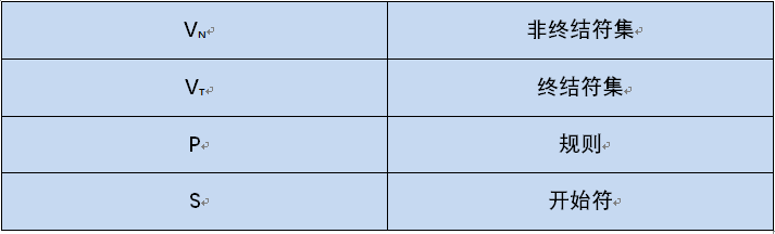 文法可以用四元组G=(VN,VT,P,S)表示