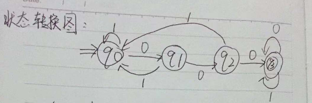 2.自动机M=({q0,q1,q2,q3},{0,1},f,q0,{q3})