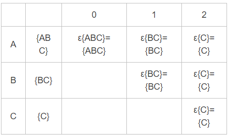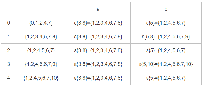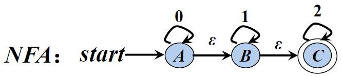将{q1,q2,…,qn}看做一个状态A,去记录NFA读入输入符号之后可能达到的所有状态的集合。