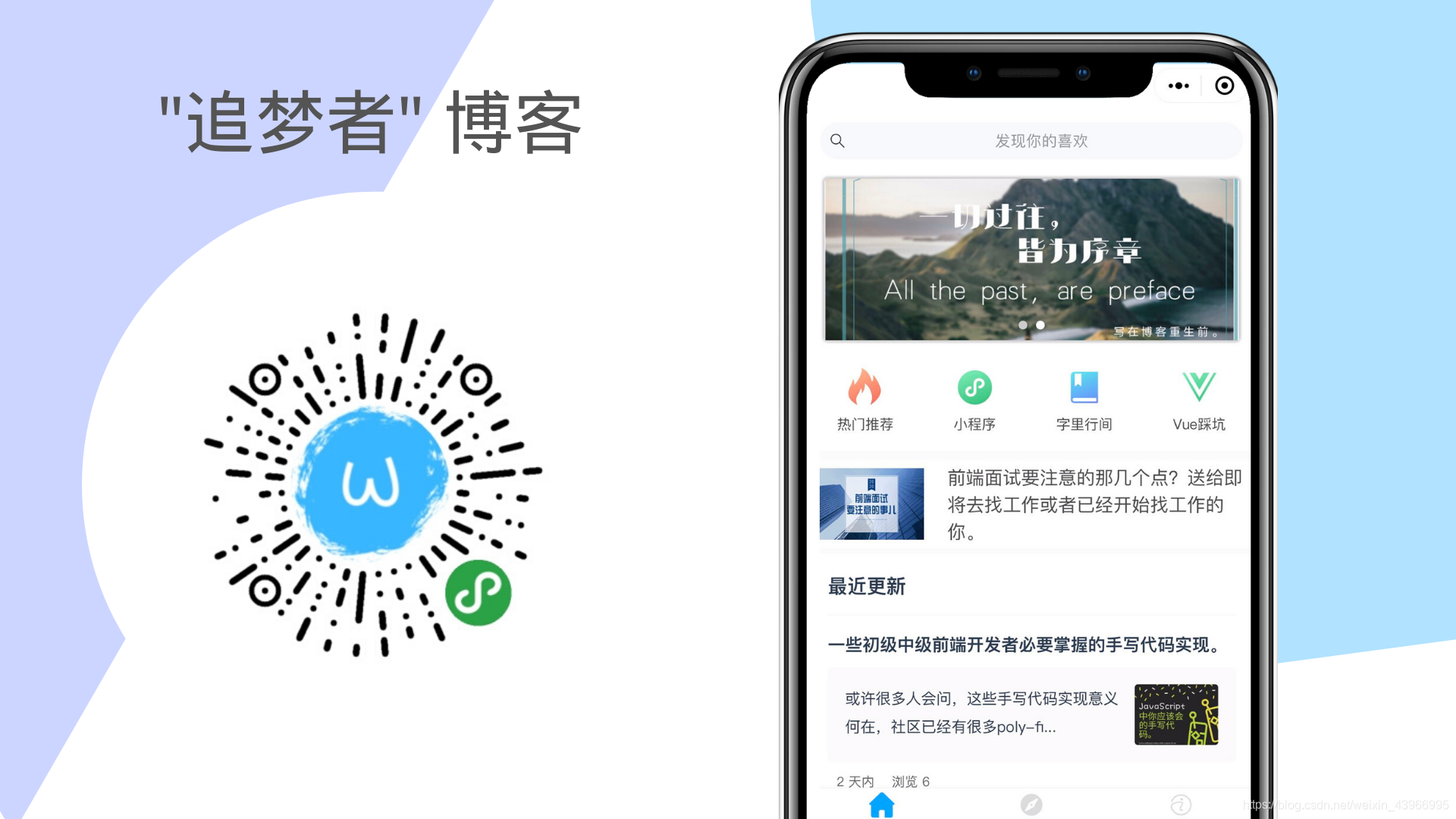 “追梦者” 个人博客小程序体验版抢先上线,欢迎扫码体验。