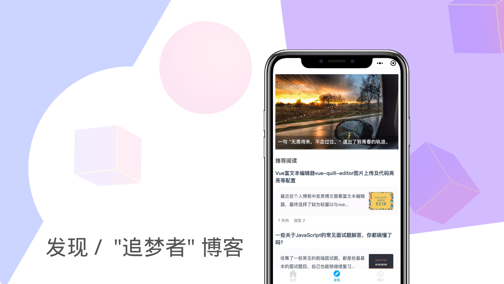 几个月前开发过一款小说阅读小程序,对于小程序开发的整体流程做了一下简单了解,完成后小说阅读类涉及商业无法上架,很遗憾,所以萌生了做一款个人博客类小程序,用了一周左右时间,完成了本次博客的体验版上线。