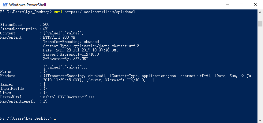 如下图所示,apidemo2的访问路径为https://{hostname}:{port}/api/demo2,输出JSON“["value3","value4"]”。