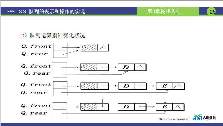 p == Q.rear),则Q.rear = Q.front(避免空队列时rear悬空);④ 释放 D 结点的内存。