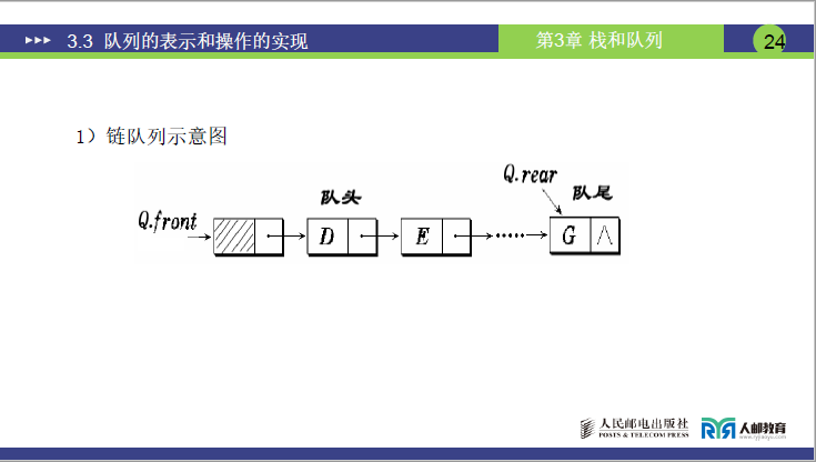 Q.front = Q.rear表示空队列,但循环队列中rear绕回后可能与front重合(如满队时),需明确区分 “空” 和 “满”。 - 课件方案 1(推荐,严蔚敏教材标准,考试重点):牺牲一个存储单元(不存数据),用以下条件判别: