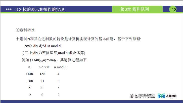 将十进制数N转换为d进制数(如d=2二进制、d=8八进制、d=16十六进制),核心原理基于 “除d取余,倒排余数”。