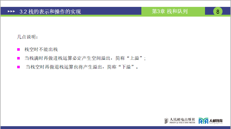 top超出栈的存储范围),此时无法再存入l,称为上溢(overflow)。