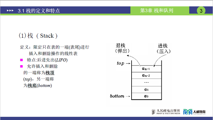 3.1.2 栈的核心术语(对应课件 3.1 中的栈结构示意图)