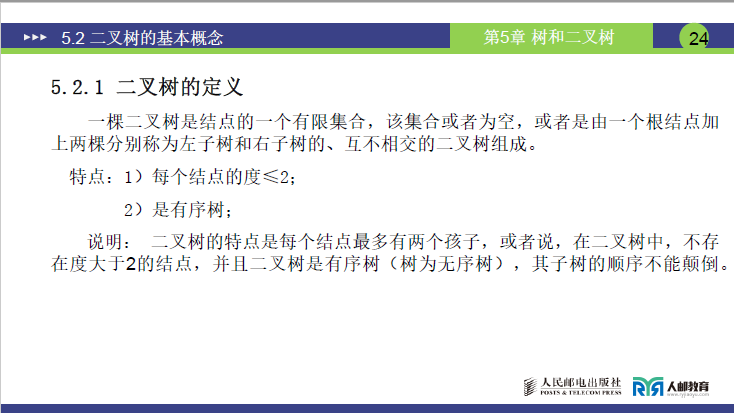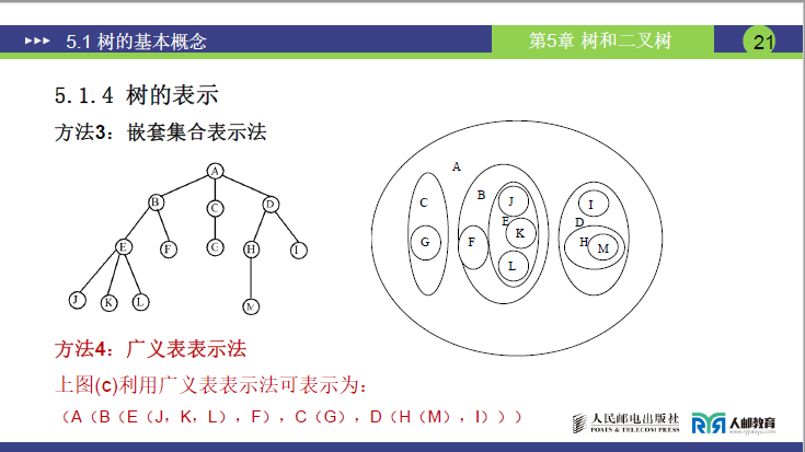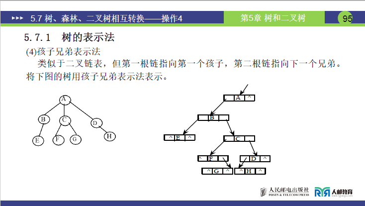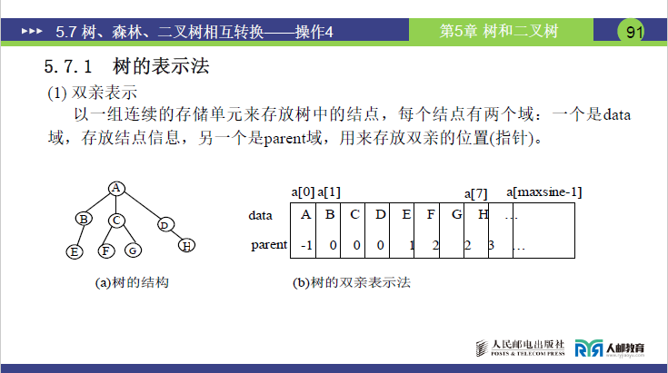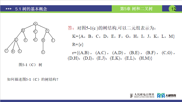 以课件中图 5-1 (c) 的树为例,其二元组描述为: