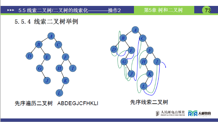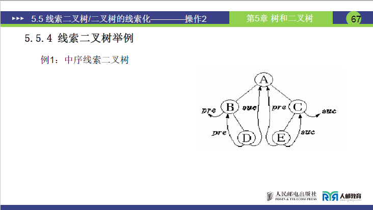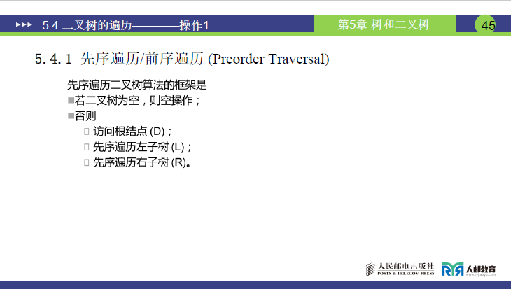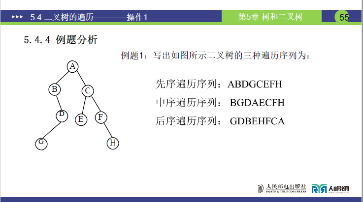 - 课件案例:树 “根 A,孩子 B、C;B 的孩子 E” 的先序遍历为A→B→E→C。