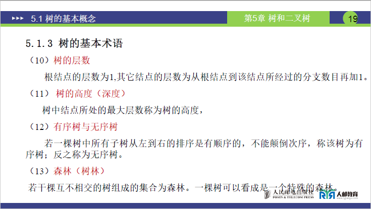 树的定义是递归形式,即子树的定义与整棵树的定义一致,子树可继续划分下一级子树,这是树结构的关键特性,也是后续树相关算法设计的核心逻辑。