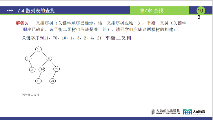 先将序列排序为(1,2,3,4,10,11,21,78)(共 8 个元素,地址 0~7)。