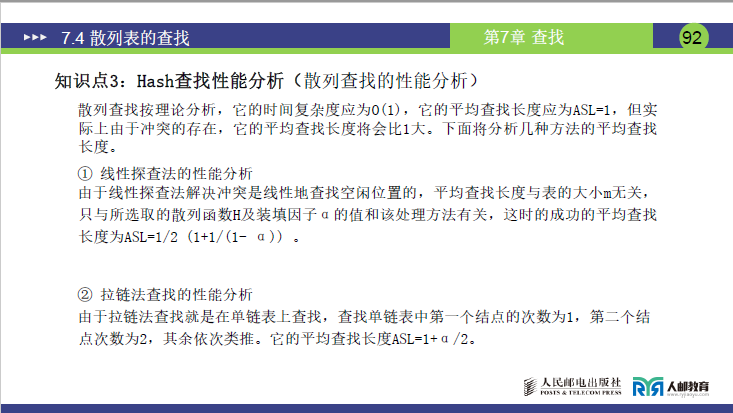 7.4.3 知识 3:散列查找性能分析(课件 92 页)
