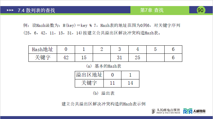 - 查找逻辑:先查基本表,若找不到且基本表对应地址有冲突记录,再查溢出区(顺序查找溢出区)。