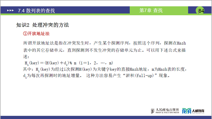 - 老师解释:“第一次算的地址被占,就换个公式再算,直到找到空地址”。