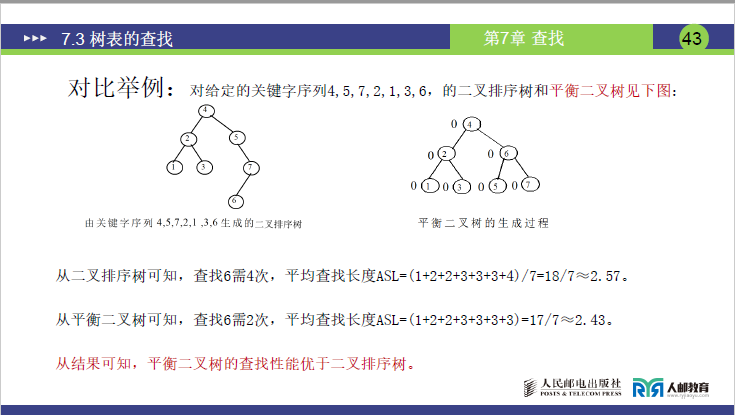 - 总结:平衡二叉树避免退化,ASL 稳定为O(log2n),优于普通二叉排序树。