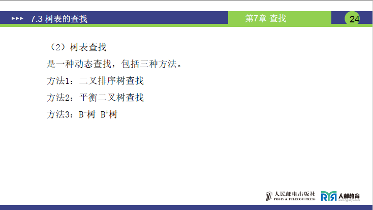 - ② 树表的查找(7.3 内容,修正讲课 “数表” 为 “树表”)