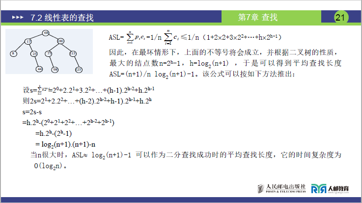 - 对比:二分查找 ASL(2.625)远小于顺序查找(4.5),但仅适用于有序表,且需随机访问(数组存储)。
