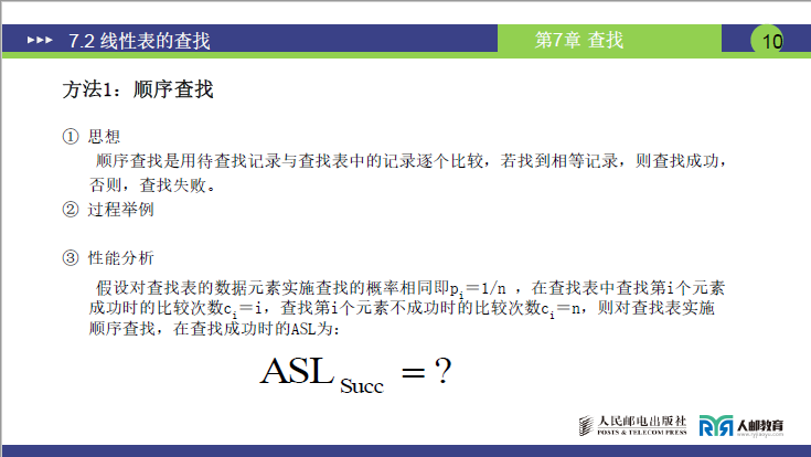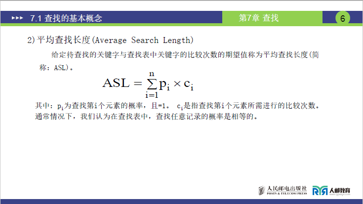 7.1.4 查找算法的性能衡量指标:平均查找长度(ASL)