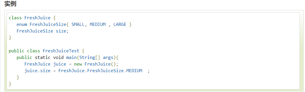 例如,我们为果汁店设计一个程序,它将限制果汁为小杯、中杯、大杯。这就意味着它不允许顾客点除了这三种尺寸外的果汁。