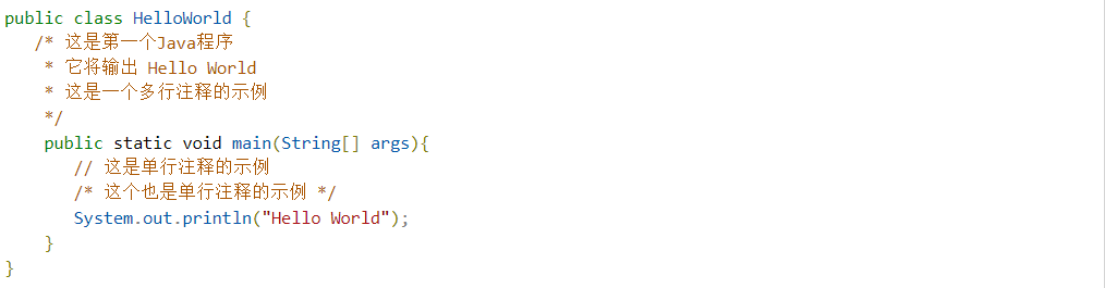 类似于 C/C++、Java 也支持单行以及多行注释。注释中的字符将被 Java 编译器忽略。
