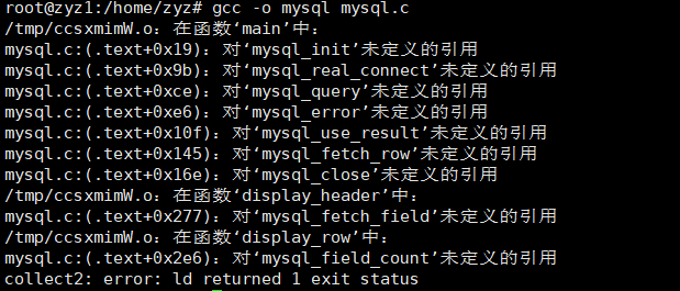 查看相关文档发现是未引入相关的库文件导致链接错误。详情参考mysql官方网站,链接如下: