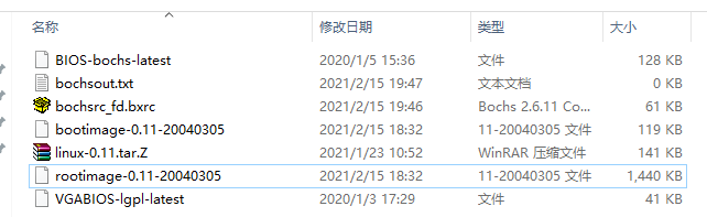 4.在bochs安装目录下新建linux-0.11文件夹,并添加如下文件。