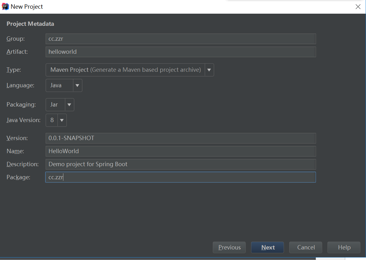 <?xml version="1.0" encoding="UTF-8"?> <project xmlns="http://maven.apache.org/POM/4.0.0" xmlns:xsi="http://www.w3.org/2001/XMLSchema-instance" xsi:schemaLocation="http://maven.apache.org/POM/4.0.0 http://maven.apache.org/xsd/maven-4.0.0.xsd"> <modelVersion>4.0.0</modelVersion> <groupId>cc.zzr</groupId> <artifactId>helloworld</artifactId> <version>0.0.1-SNAPSHOT</version> <packaging>jar</packaging> <name>HelloWorld</name> <description>Demo project for Spring Boot</description> <parent> <groupId>org.springframework.boot</groupId> <artifactId>spring-boot-starter-parent</artifactId> <version>1.5.10.RELEASE</version> <relativePath/> <!-- lookup parent from repository --> </parent> <properties> <project.build.sourceEncoding>UTF-8</project.build.sourceEncoding> <project.reporting.outputEncoding>UTF-8</project.reporting.outputEncoding> <java.version>1.8</java.version> </properties> <dependencies> <dependency> <groupId>org.springframework.boot</groupId> <artifactId>spring-boot-starter-web</artifactId> </dependency> <dependency> <groupId>org.springframework.boot</groupId> <artifactId>spring-boot-starter-test</artifactId> <scope>test</scope> </dependency> </dependencies> <build> <plugins> <plugin> <groupId>org.springframework.boot</groupId> <artifactId>spring-boot-maven-plugin</artifactId> </plugin> </plugins> </build> </project>