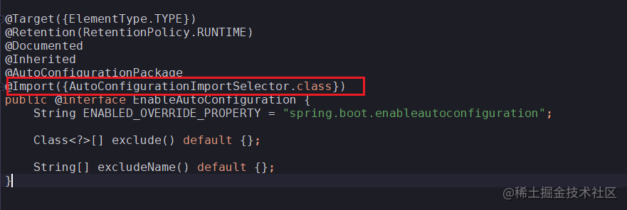 我们点击进入@EnableAutoConfiguration注解,可以发现: