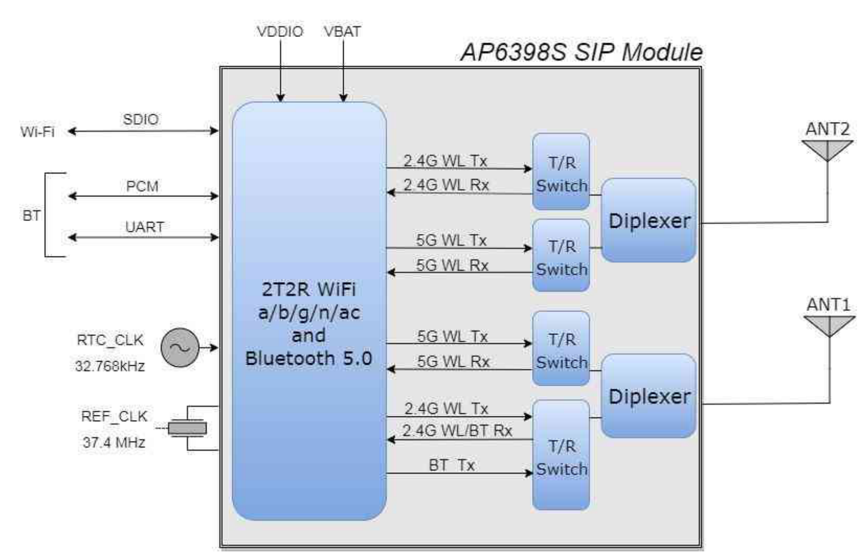 MYD-YA157C系列定制板,此次我们定制采用了AP6398S模块,WiFi蓝牙二合一芯片,本次仅记录WiFi模块适配过程,WiFi部分通过SDIO接口与Soc进行数据交互。