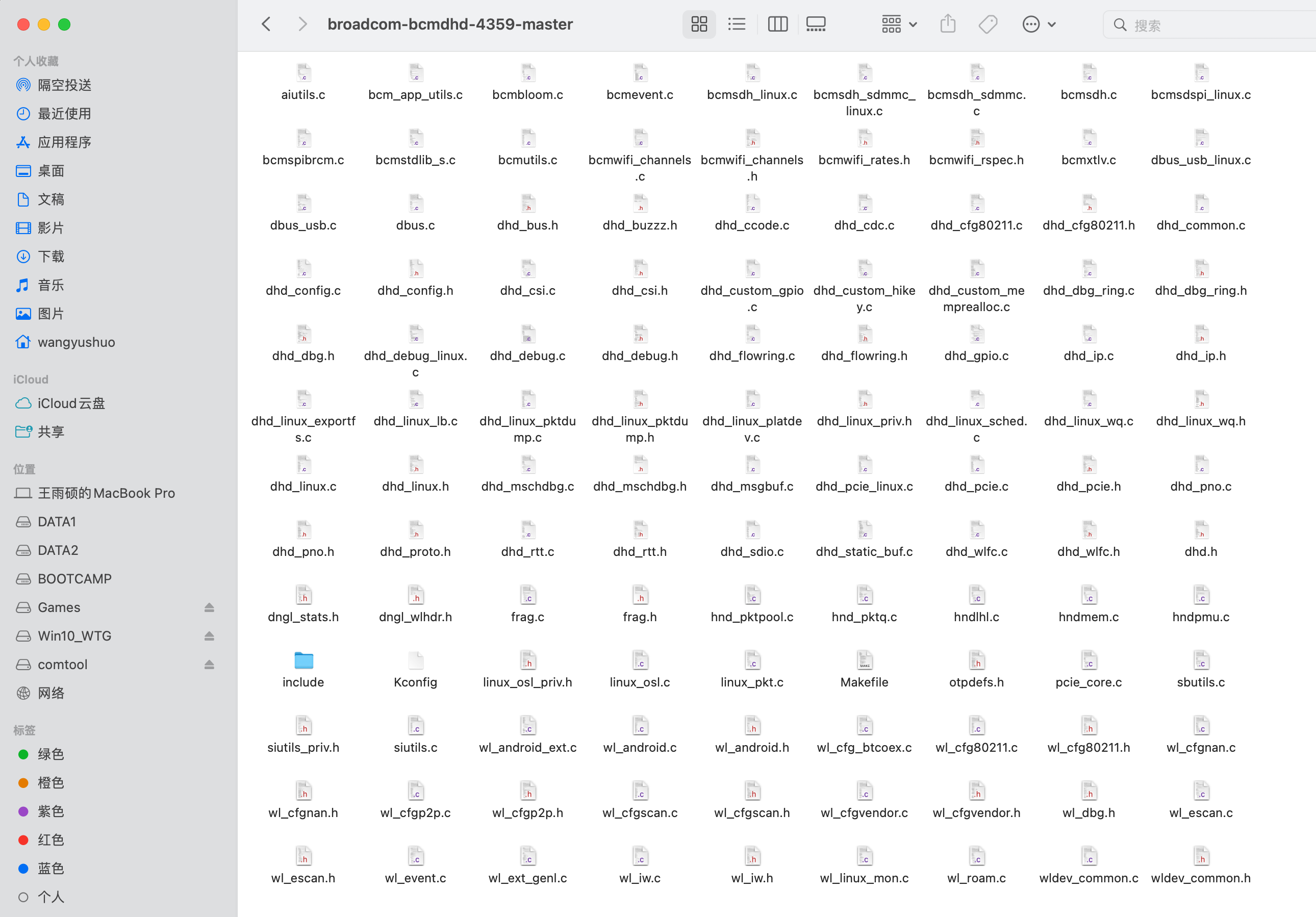 因缺少驱动,我在github中找到了适用于BCM4359的bcmdhd驱动,其文件目录结构如下图所示: