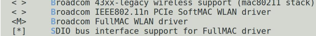 Device Drivers->Network device support->Wireless LAN-> <M> Broadcom FullMAC