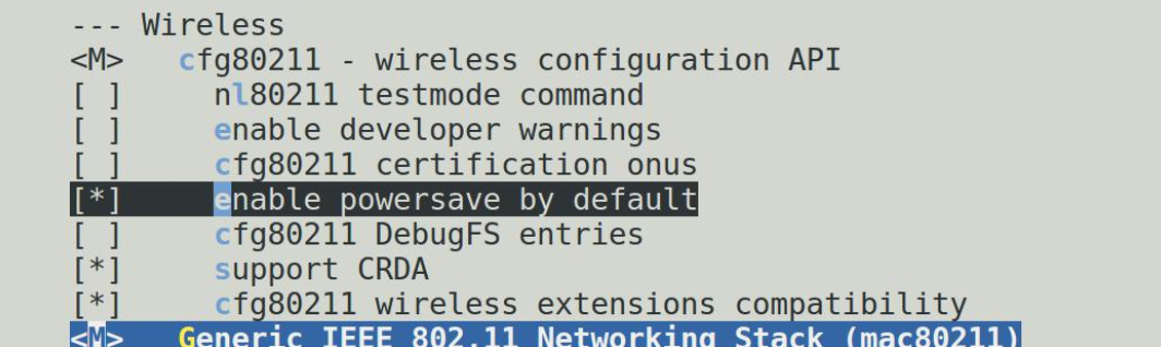 Networking support->Wireless-><M> cfg80211 - wireless configuration API->[*]