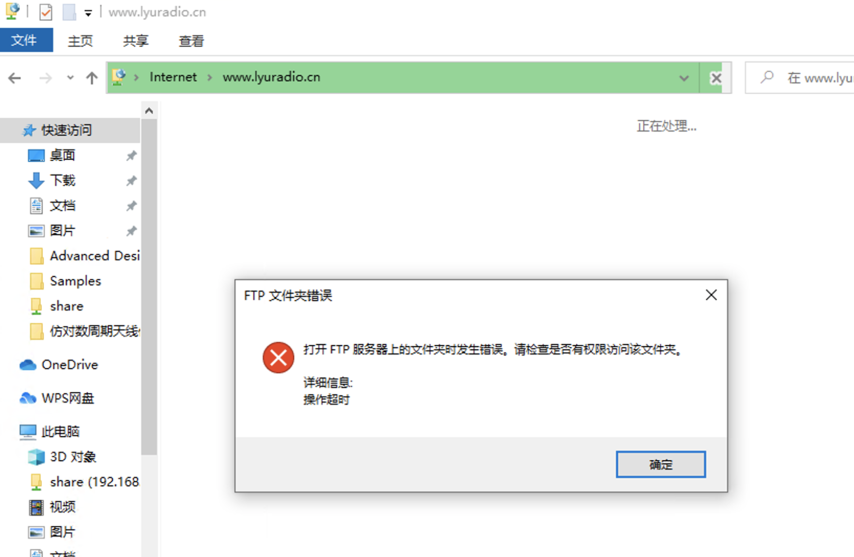 小笔记:FTP连接时提示“打开FTP服务器上的文件夹时发生错误。请检查是否有权限访问该文件夹 详细信息:操作超时”的解决方法