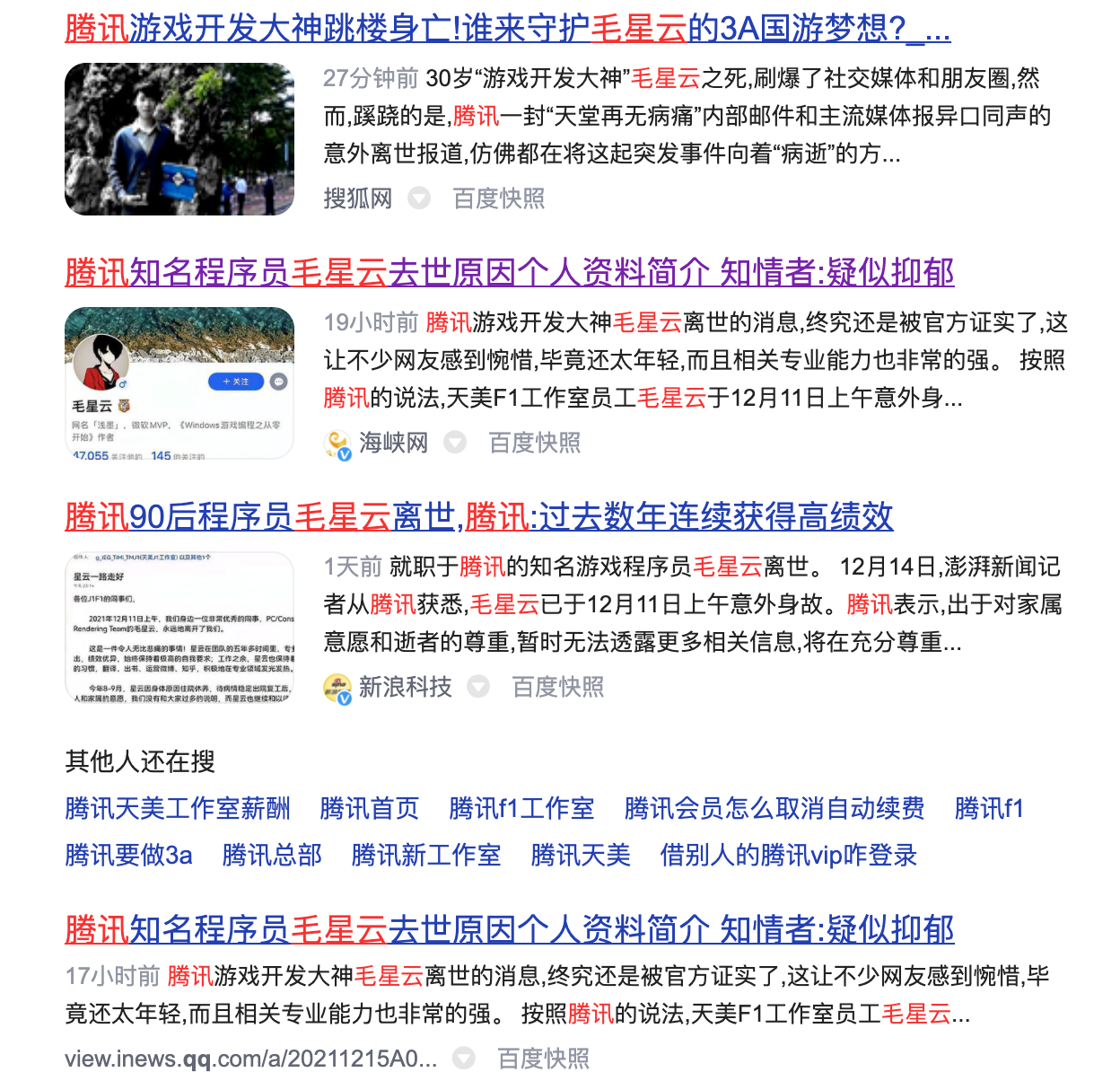马上就要春节了,2021年12月 11日上午, 大神毛星云选择纵身一跳来结束自己30岁的生命.各大媒体也是争相报道.