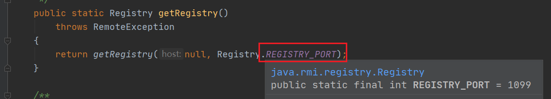 这里获取 registry 不传参的话使用的是默认端口:1099 肯定连不上了。