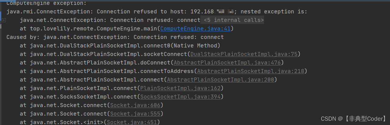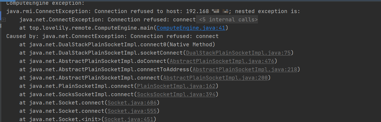 暴露对象时,端口传的是0,由 RMI 或操作系统动态选择,不方便调试,我们改成一个自定义端口9999, 启动后报错:
