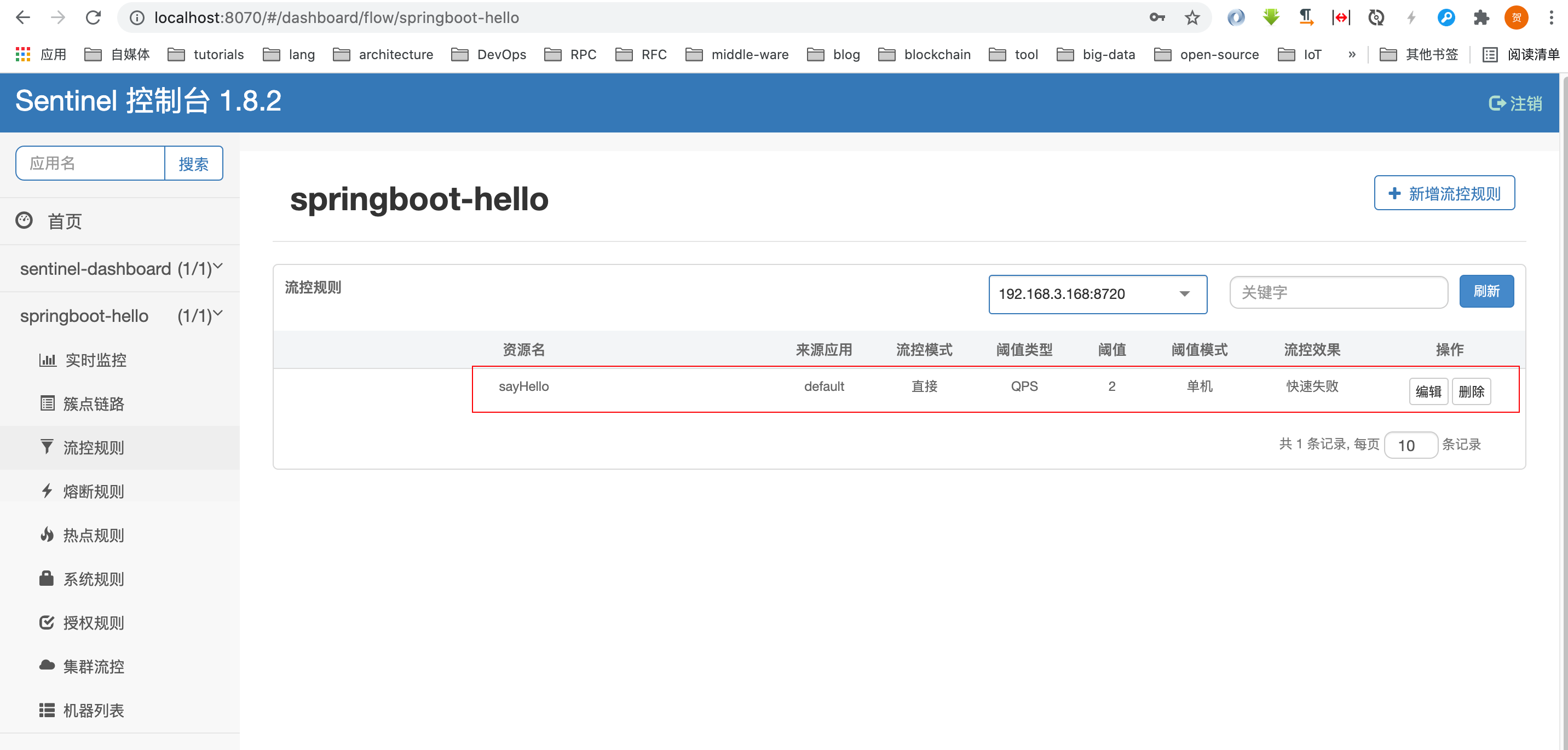 在 dashboard 配置流控规则和熔断规则: