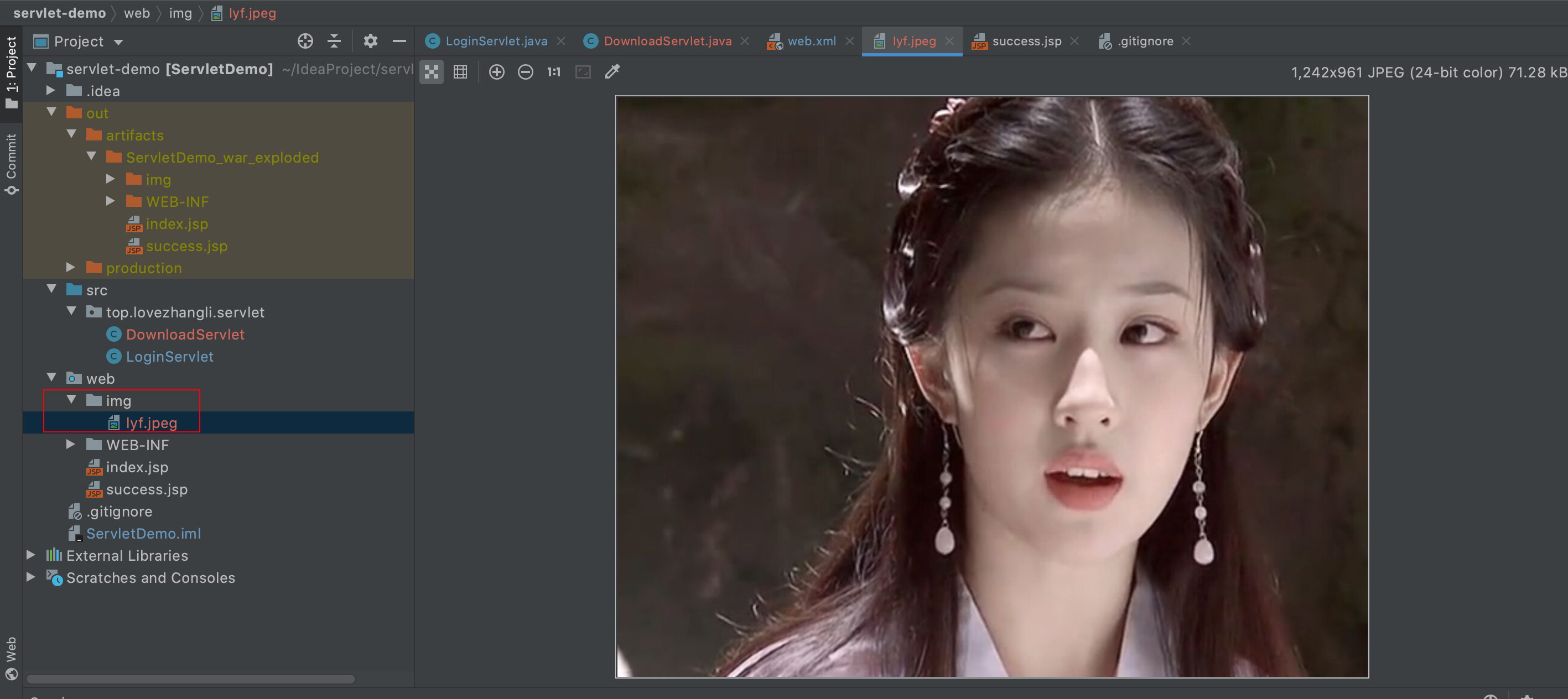 String realPath = getServletContext().getRealPath("/img/lyf.jpeg");