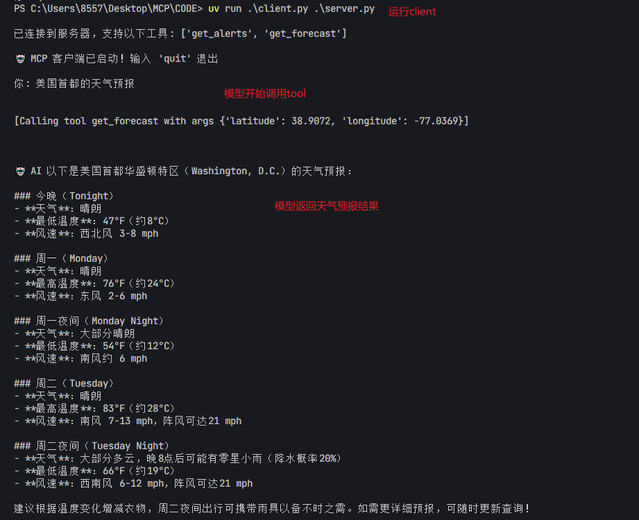 使用MCPServer(天气预报与告警)、MCPClient(deepseek-chat),实践基于MCP的AI对话开发