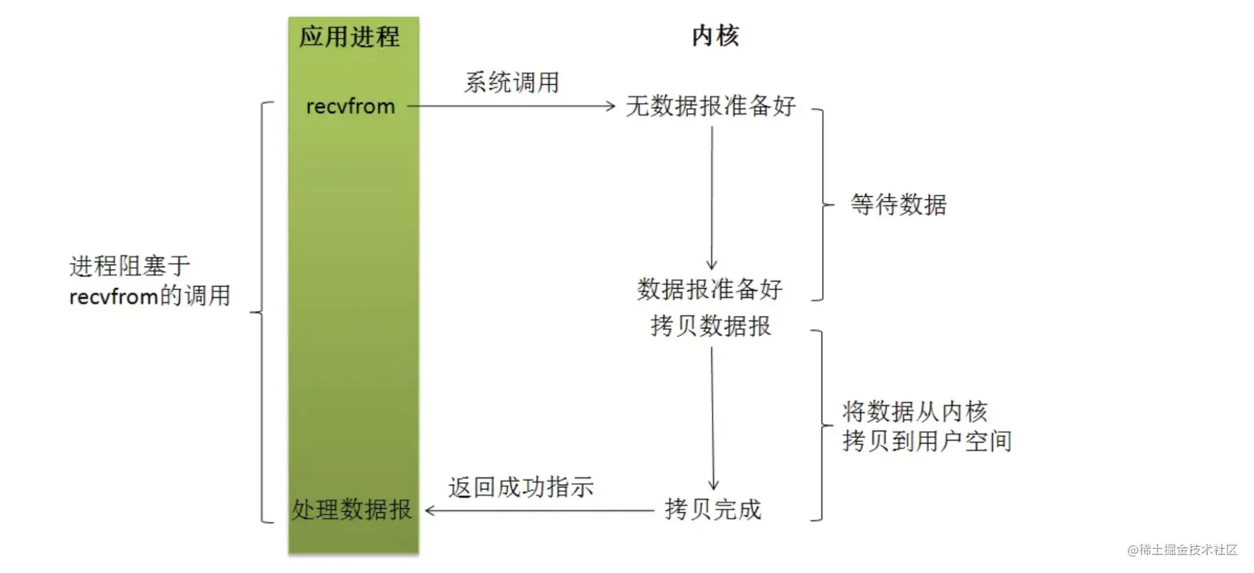 - 从内核空间复制到用户空间,用户程序拿到数据