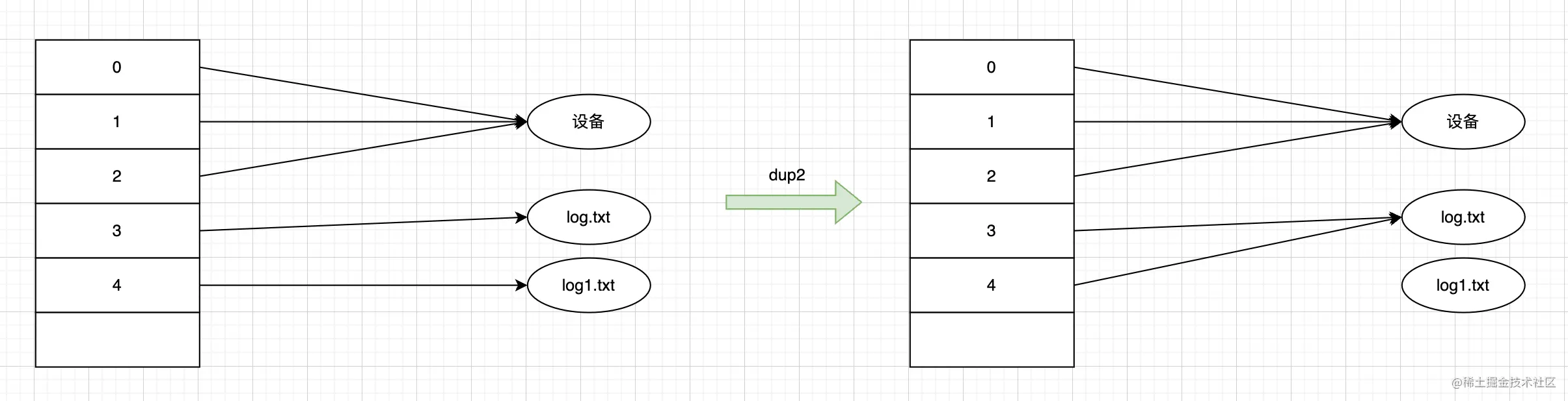 dup2 函数,把指定的 newfd 也指向 oldfd 指向的文件。执行完dup2之后,newfd 和 oldfd 同时指向同一个文件,共享文件偏移量和文件状态